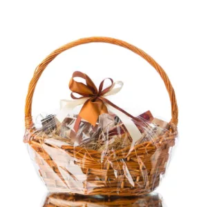 First, you’re looking to get a good, solid, reliable basket onto which you’re going to make your gift. Find something that will go with your whole theme of the basket gift. If you’re going for a classy, upscale look, by all means, a wicker or bamboo, one will be great for it. If it’s all about fun and games, then a bright-colored or patterned basket is really good, too.