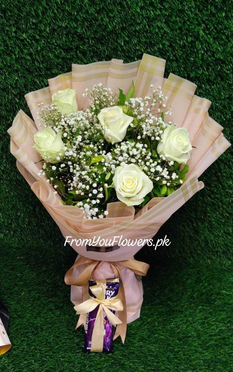 This design is hand-arranged and carried by a team member of FromYouFlowers.pk.