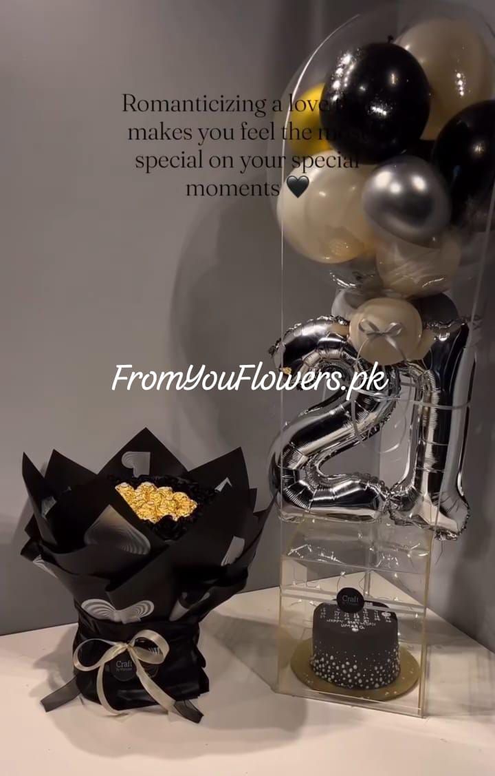 This design is hand-arranged and carried by a team member of FromYouFlowers.pk.Flowers delivery is available in Lahore, Islamabad, Rawalpindi, Karachi & Faisalabad. If any flower or item is not available, we’ll add a substitute as per our replacement policy*. FromYouFlowers.pk offers same-day delivery in Lahore, Islamabad, Rawalpindi, and Karachi, Pakistan. T&C apply.