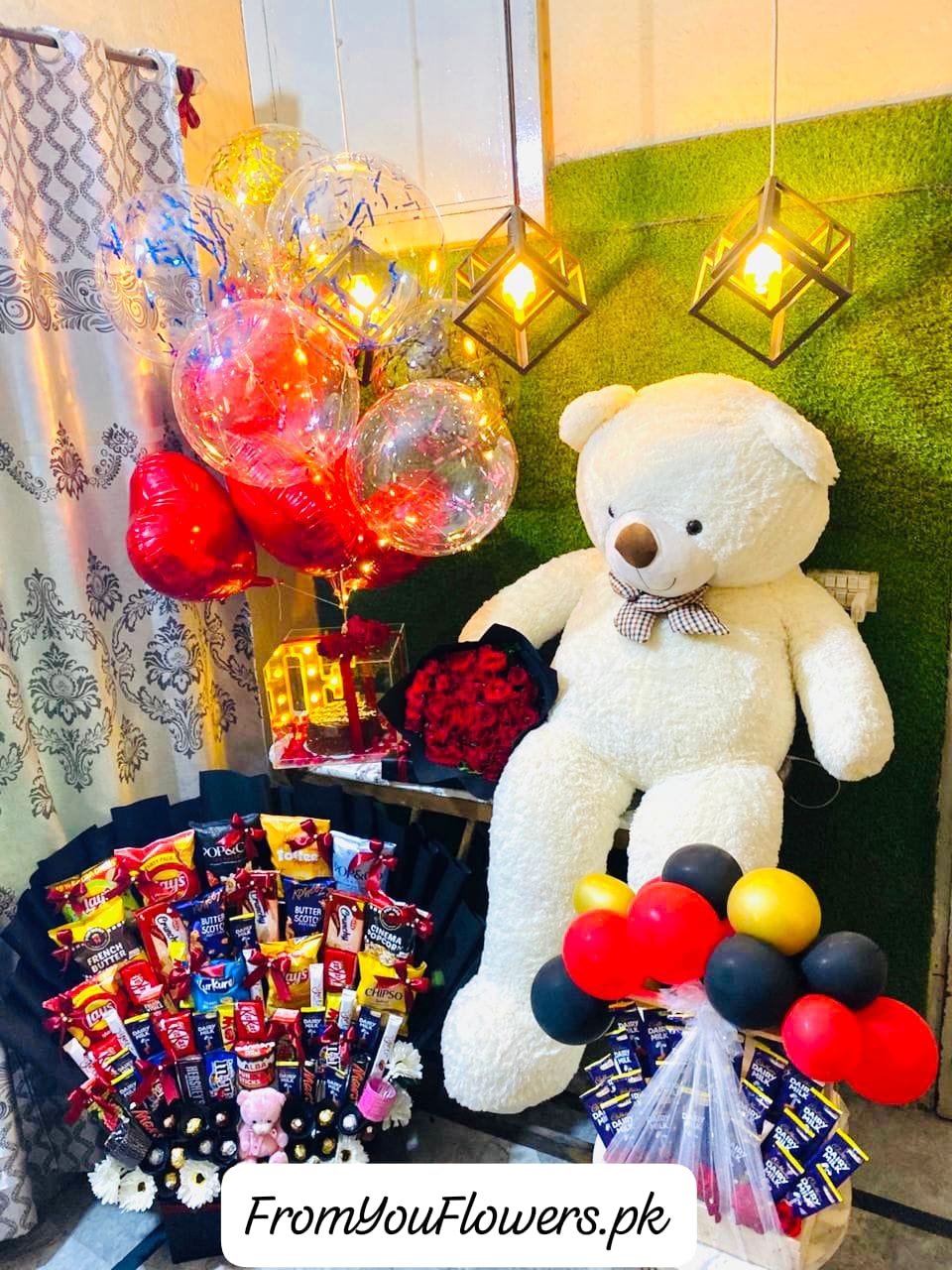 Express your love in the most adorable way with a charming teddy bear paired with beautiful fresh flowers. Surprise your special someone with our Valentine’s Day Teddy Bear with Flowers Lahore collection, thoughtfully designed to impress.